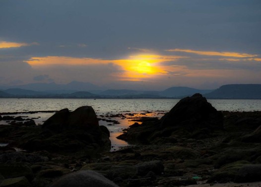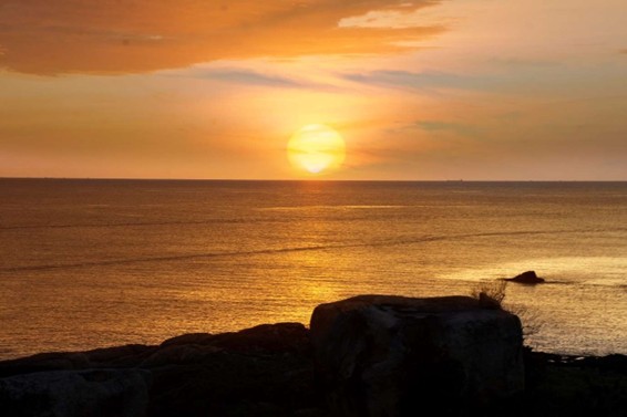 Ở phía chân trời, mặt trời màu cam lộng lẫy nhô lên khỏi mặt biển, tỏa vệt sáng vàng loang loáng dát bạc sóng xanh. Giây phút ấy, tôi thấy buồng tim mình chợt rộng ra, mọi muộn phiền rơi lại phía sau, chỉ còn nghe tiếng sóng vỗ về như câu kinh tỉnh thức.