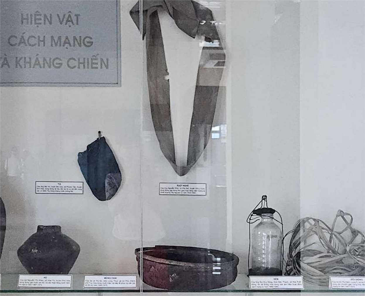 Những chiếc đèn dầu, đèn pin từng lập lòe trong đêm tối nô lệ để làm ám hiệu cho bộ đội, những chiếc lò dầu bám bụi, chiếc nồi móp méo, cái lon guigoz… từng là những vật dụng quý giá cho đời sống du kích, những bầu tre mộc mạc – là cả kho lương khô, mắm cá, gạo sắn, lủi qua đồng bãi, băng qua chốt đồn, nuôi quân giữa lòng địch. Người nông dân tay cày, tay súng, tay rựa để phát lau, mở đường, cũng để dựng chòi che đạn pháo, cũng để phòng thân khi giáp mặt quân thù.
